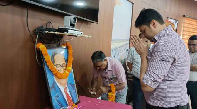कलेक्ट्रेट सभागार में जिलाधिकारी अविनाश कुमार, अपर जिलाधिकारी वि0/रा0 दिनेश कुमार, मुख्य राजस्व अधिकारी आयुष चौधरी एंव अन्य अधिकारियो एंव कर्मचारियों ने बाबा साहब के चित्र पर माल्यार्पण कर श्रद्धासुमन अर्पित करते हुए श्रद्धांजलि दी।