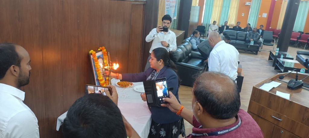 गाजीपुर।जनपद न्यायालय के दसकक्षीय सभागार में डा. भीम राव अंबेडकर की 135वीं जन्मदिवस जयंती समारोह का आयोजन किया गया। जयंती समारोह आयोजन में धर्मेन्द्र कुमार पाण्डेय, जनपद न्यायाधीश/अध्यक्ष, जिला विधिक सेवा प्राधिकरण, गाजीपुर, विजय कुमार-चतुर्थ, अपर जिला एवं सत्र न्यायाधीश/त्वरित न्यायालय कक्ष सं0-01, गाजीपुर, अर्चना-।।, पूर्णकालिक सचिव, जिला विधिक सेवा प्राधिकरण, गाजीपुर एवं अन्य न्यायिक अधिकारीगण, तथा कृपाशंकर राय, जिला शासकीय अधिवक्ता, फौजदारी, विद्वान अधिवक्तागण, तृतीय एवं चतुर्थ श्रेणी कर्मचारीगण व सुरक्षाकर्मी दस कक्षीय सभागार में प्रातः 10ः30 बजे उपस्थित हुए।