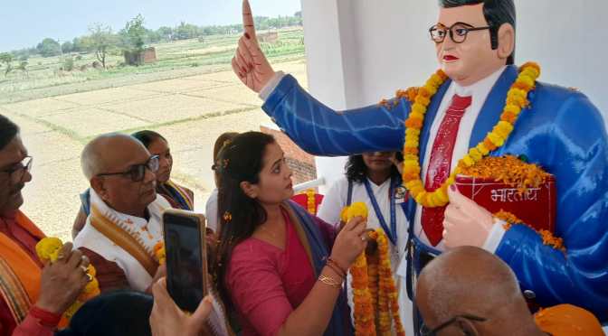 गाजीपुर (जखनिया)। खानपुर रघुवर ग्राम सभा में 14 अप्रैल डा.भीमराव अंबेडकर की जयंती पर डॉ अंबेडकर की आदमकद प्रतिमा का भव्य अनावरण जिला पंचायत अध्यक्ष सपना सिंह के कर कमलो द्वारा किया गया। उक्त अवसर पर सपना सिंह ने कहा की डॉ. भीमराव अंबेडकर की जयंती सामानता, शिक्षा, सामाजिक न्याय के प्रतीक के रूप में मनाई जाती है। भारतीय संविधान के शिल्पकार बाबा साहब ने आजीवन वंचित, शोषित वर्ग के अधिकार महिला सशक्तिकरण और राष्ट्र की एकता के लिए संघर्ष किया। उन्होंने कहा “शिक्षा वह शेरनी का दूध है जो पियेगा वह दहाड़ेगा” इसलिए बाबा साहब हमेशा कहते थे “शिक्षित बनो संगठित रहो अपने अधिकारों के लिए संघर्ष करो।” विशिष्ट अतिथि प्रदेश कार्य समिति सदस्य कृष्ण बिहारी राय ने कहा की बाबा साहब महान समाज सुधारक बहुयामी प्रतिभा के धनी थे। वह महान अर्थशास्त्री, धर्मशास्त्री, दार्शनिक, चिंतक, लेखक, पत्रकार, संपादक, शिक्षाविद, इतिहासकार थे। उन्होंने अपना पूरा जीवन समता मूलक समाज बनाने और लोगों को अधिकार दिलाने में गुजार दिया। पूर्व जिला अध्यक्ष भानु प्रताप सिंह ने कहा की बाबा साहब ने अंधविश्वास और छुआछूत को मिटाने के लिए समाज में बहुत काम किया। वह एक अकेले ऐसे शिक्षाविद थे जिनके पास 32 डिग्रियां, 64 विषयों का ज्ञान और 9 भाषाएं जानते थे। उनकी योग्यता को देखते हुए 1926 में ही मुंबई स्टेट सरकार ने विधान परिषद के सदस्य के रूप में उनकी नियुक्ति किया और 1951 तक वह विभिन्न पदों पर कार्यरत रहे। विश्व के सबसे बड़े लोकतांत्रिक देश का संविधान उन्होंने लिखा और मरणोपरांत उनको भाजपा समर्थित सरकार में भारत रत्न दिया गया। मोदी सरकार आने के बाद उनके पंच तीर्थ महू जन्मभूमि, लंदन शिक्षा स्थल, नागपुर दीक्षा स्थल, दिल्ली महापरिनिर्वाण भूमि, मुंबई चैत्य भूमि के रूप में स्थापित की गई।उनके दिए गए विचारों और सिद्धांतों को भाजपा सरकार जन-जन तक पहुंचाने का कार्य कर रही है। कार्यक्रम के आयोजक कैलाश नाथ व ग्राम प्रधान पूनम देवी ने मुख्य अतिथि को भगवान बुद्ध की प्रतिमा भेट की व आए हुए अतिथियों को स्मृति चिन्ह वस्त्र देखकर सम्मानित किया। कार्यक्रम में प्रमुख रूप से भाजपा व्यापार प्रकोष्ठ जिला अध्यक्ष प्रमोद वर्मा, भाजपा मंडल अध्यक्ष धर्मवीर राजभर, उमाशंकर यादव, आलोक रंजन तिवारी, राजन प्रजापति, पंकज सिंहा, दयाशंकर सिंह, इंद्रदेव कुशवाहा, ओंकार सिंह, अरविंद चौहान, मृदुला पांडेय, शैलू सिंह, बद्रीराम, लोकनाथ, देवेंद्र वकील, राम सिंह, मनीष कुमार, शुभम, सोनू, अभिषेक, जनार्दन, राकेश, शैलेंन्द्री देवी, बिंदु देवी, शैली देवी, नगीना राम, सुब्बा राम, चन्द्रमा प्रसाद, कृष्ण कुमार सहित समस्त ग्रामीण वासी और पार्टी के लोग मौजूद रहे। कार्यक्रम की अध्यक्षता 