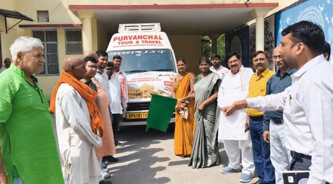 गाजीपुर।जिलाधिकारी अविनाश कुमार के निर्देश के क्रम में सोभनाथ यात्रा 18 से 24 अप्रैल, 2026 तक का कार्यक्रम के दौरान जनपद से नगर पालिका अध्यक्ष सरिता अग्रवाल द्वारा रायफल क्लब कलेक्ट्रेट परिसर से हरी झंडी दिखाकर रवाना किया गया।