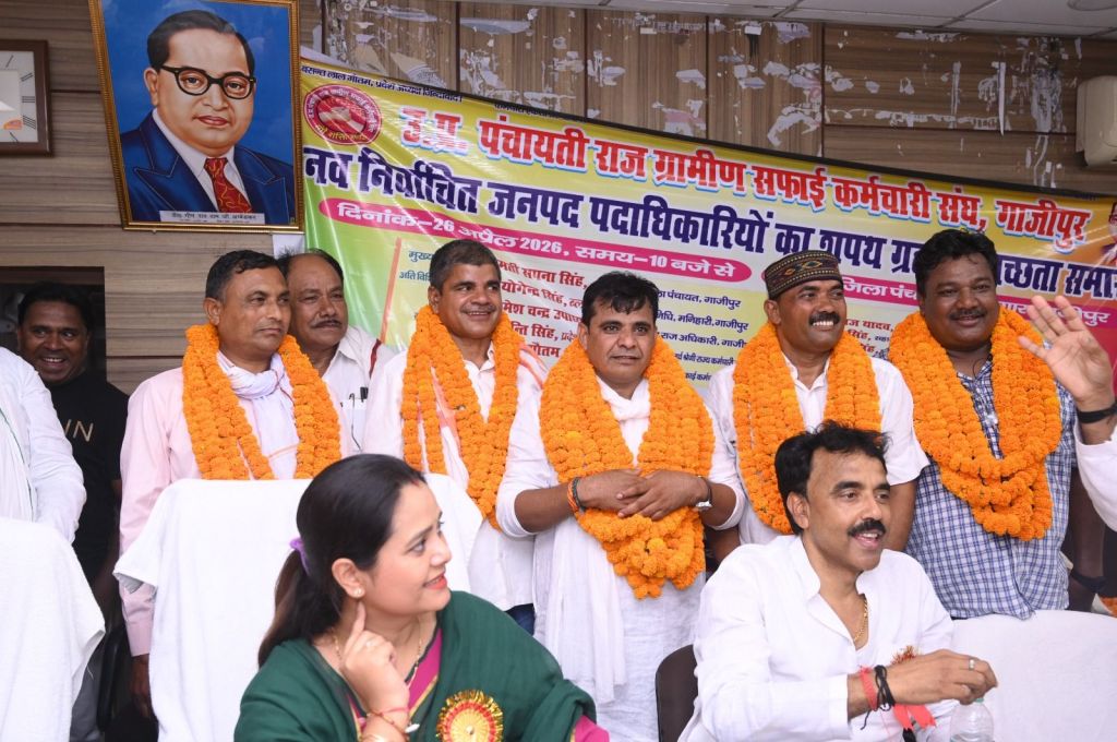गाजीपुर। पंचायती राज ग्रामीण सफाई कर्मचारी संघ, जनपद शाखा द्वारा आयोजित द्विवार्षिक शपथ एवं सम्मान समारोह जिला पंचायत सभागार में संपन्न हुआ। कार्यक्रम की अध्यक्षता जिला अध्यक्ष जयप्रकाश यादव ने की।