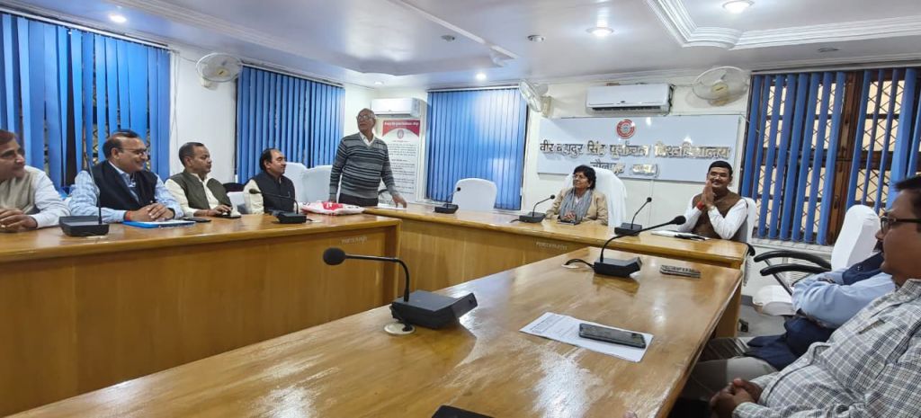 इससे शिक्षण कार्य प्रभावित है, इसे भरा जाय। महाविद्यालयों में प्रोफेसर ,एसोसिएट प्रोफेसर एवं असिस्टेंट प्रोफेसर की वरिष्ठता सहित श्रेणी निर्धारित कर दी जाय। कर्मचारियों की कमी को पूरी की जाय तथा शोध में अन्तरविषयक मान्यता प्रदान की जाय। बैठक में विश्वविद्यालय के कुल सचिव श्री केश लाल, उप कुलसचिव श्री अजीत कुमार सिंह सहित अन्य अधिकारी उपस्थित रहे। बैठक के प्रारंभ में महासंघ के पदाधिकारी एवं कार्यकर्ताओं द्वारा कुलपति, कुलसचिव एवं उपकुलसचिव को सम्मानित किया गया। बैठक में प्रोफेसर संजय चतुर्वेदी, डॉ० श्रवण कुमार शुक्ला, डॉ० माया सिंह, डॉ० अलकेश्वरी सिंह, डॉ० पुष्पा सिंह, डॉ० प्रतिभा सिंह, प्रोफेसर हिमांशु सिंह, प्रोफेसर एस के पाठक, प्रोफेसर सुनील प्रताप सिंह, डॉ० राजेंद्र सिंह, प्रोफेसर अशोक सिंह मिर्जापुर, डॉ० योगेश चंद्र शर्मा, डॉ० रविकांत सिंह सहित दर्जनों अनेक कार्यकर्ता एवं पदाधिकारी सम्मिलित थे।