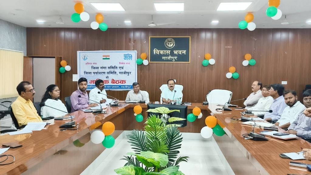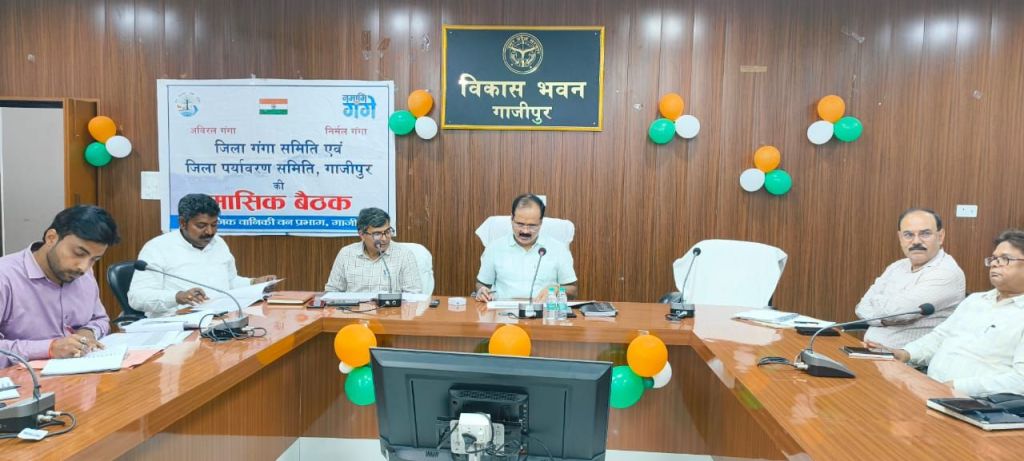 गाजीपुर। मुख्य विकास अधिकारी संतोष कुमार वैश्य की अध्यक्षता में मंगलवार को जिला गंगा समिति एवं जिला पर्यावरण समिति की बैठक विकास भवन सभागार में संपन्न हुई। मुख्य विकास अधिकारी ने बैठक में जिला पंचायत राज अधिकारी को अनाधिकृत स्थलों पर फैले कूड़ा-कचरा को जल्द से जल्द उचित स्थान पर निस्तारित कराने एवं गंगा ग्राम आर्द्रभूमि समिति का गठन कार्य जल्द से जल्द पूर्ण करने हेतु निर्देश दिया। सभी अधिशासी अधिकारी नगर पालिका एवं नगर पंचायत को सिंगल यूज प्लास्टिक जब्तिकरण कार्य को युद्ध स्तर पर चलाने हेतु निर्देश दिया। बैठक में प्रभागीय निदेशक अजीत प्रताप सिंह, नामित सदस्य जिला पर्यावरण समिति शैलेष राम एवं जनपद स्तरीय अधिकारी गण उपस्थित रहे ।