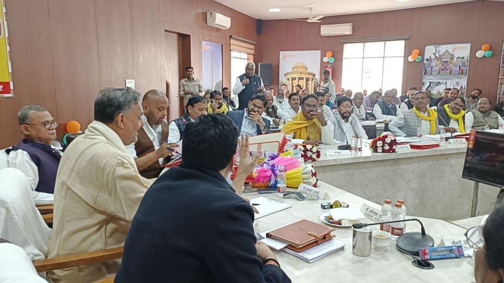 गाजीपुर।जिला विकास समन्वय एंव निगरानी समिति (दिशा) की बैठक गुरुवार को कलेक्ट्रेट सभागार मे सम्पन्न हुई। बैठक सांसद अफजाल अंसारी की अध्यक्षता एवं सांसद बलिया सनातन पाण्डेय, विधायक जमानियां ओम प्रकाश सिंह, विधायक मोहम्मदाबाद सुहेब उर्फ मन्नू अंसारी, विधायक सदर जै किशन शाहू, विधायक जखनियां बेदीराम, विधायक जंगीपुर डा. विरेन्द्र यादव, नगर पालिका अध्यक्ष सरिता अग्रवाल, प्रतिनिधि विधायक जहूराबाद, जिलाधिकारी अविनाश कुमार, ब्लाक प्रमुखो, नामित सदस्य/प्रधानगण की उपस्थिति में सम्पन्न हुआ। बैठक मे सांसद द्वय द्वारा सदन की कार्यवाही प्रारम्भ की गई। बैठक मे जिलाधिकारी अविनाश कुमार ने बैठक का एजेण्डा बिन्दू विस्तारपूर्वक समिति के सम्मुख पी पी टी के माध्यम से प्रस्तुत किया । अध्यक्षता करते सांसद अफजाल अंसारी ने केन्द्र/राज्य सरकार की लोक कल्याणकारी, रोजगारपरक एवं गरीबी उन्मूलन योजनाओं का लाभ जिले के पात्र एवं जरूरतमंद लोगों तक पहुॅचाने एवं केन्द्र/प्रदेश सरकार की योजनाओं को मूर्त रूप देने के लिए संबंधित विभागीय अधिकारियों को निर्देश दिए साथ ही विकास कार्यो को समयबद्धता के साथ जनप्रतिनिधियों को कराए जाने वाले कार्याे के संबंध मे अवगत कराते हुए संबंधित कार्याे को पूर्ण कराने का निर्देश संबंधित अधिकारियों को दिए। सांसद द्वय द्वारा जनपद में किसी भी गरीब परिवार का आपदा से नुकसान होता है तो उस स्थिति में उन्हे मुख्यमंत्री आवास योजना से लाभान्वित किया जाए।