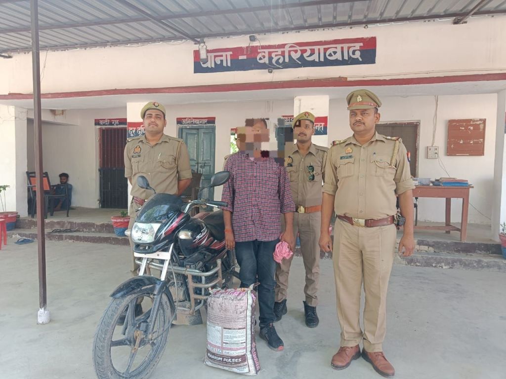 गाजीपुर। स्वाट टीम और बहरियाबाद थाना पुलिस की संयुक्त टीम ने गांजा तस्कर को 10 किलो गांजा के साथ गिरफ्तार किया। जिसके पास से एक मोटरसाइकिल और गांजा बरामद किया गया जिसकी कीमत लगभग 2.5 लाख रुपये है। एसपी ओमवीर सिंह के निर्देश पर थानाध्यक्ष भूपेन्द्र कुमार निषाद और स्वाट सर्विलांस टीम ने बुधवार को मुखबीर की सूचना पर उदन्ती नदी पुल बहरियाबाद के पास से एक बिना नम्बर प्लेट की सुपर स्प्लेंडर मोटर साईकिल सवार व्यक्ति को मोटर साईकिल की पिछली सीट पर बोरी में बांधकर 10 किलो 200 ग्राम गांजा ले जाते समय गिरफ्तार किया। पूछताछ में अभियुक्त सुनील यादव पुत्र शामू यादव निवासी गहनी (फौलादपुर) थाना बहरियाबाद ने बताया कि हम भारी मात्रा मे गांजा ले जाते समय पूर्व में जनपद आजमगढ़ जेल जा चुका हूं। जिसके कारण आर्थिक तंगी बदहाली होने पर पुन: गांजे के व्यवसाय मे लगकर असम उड़ीसा से कम दामों में गांजा लाकर अपने यहाँ के चट्टी चौराहो के फुटकर दुकानदारों को ऊंचे दामों में बेचकर अपने नुकसान की भरपाई मे लगा था। कहा कि पुलिस व मुखबीर के सूचना से बचने के लिए अपने मोटर साईकिल की नम्बर प्लेट UP61V1109 को निकालकर बिना नम्बर प्लेट की मोटर साईकिल से गांजा ले जा रहा था, कि फिर से बहरियाबाद पुलिस द्वारा पकड़ लिया गया। गिरफ्तार करने वाली पुलिस टीम में प्रभारी स्वाट की टीम और बहरियाबाद पुलिस शामिल रहे।