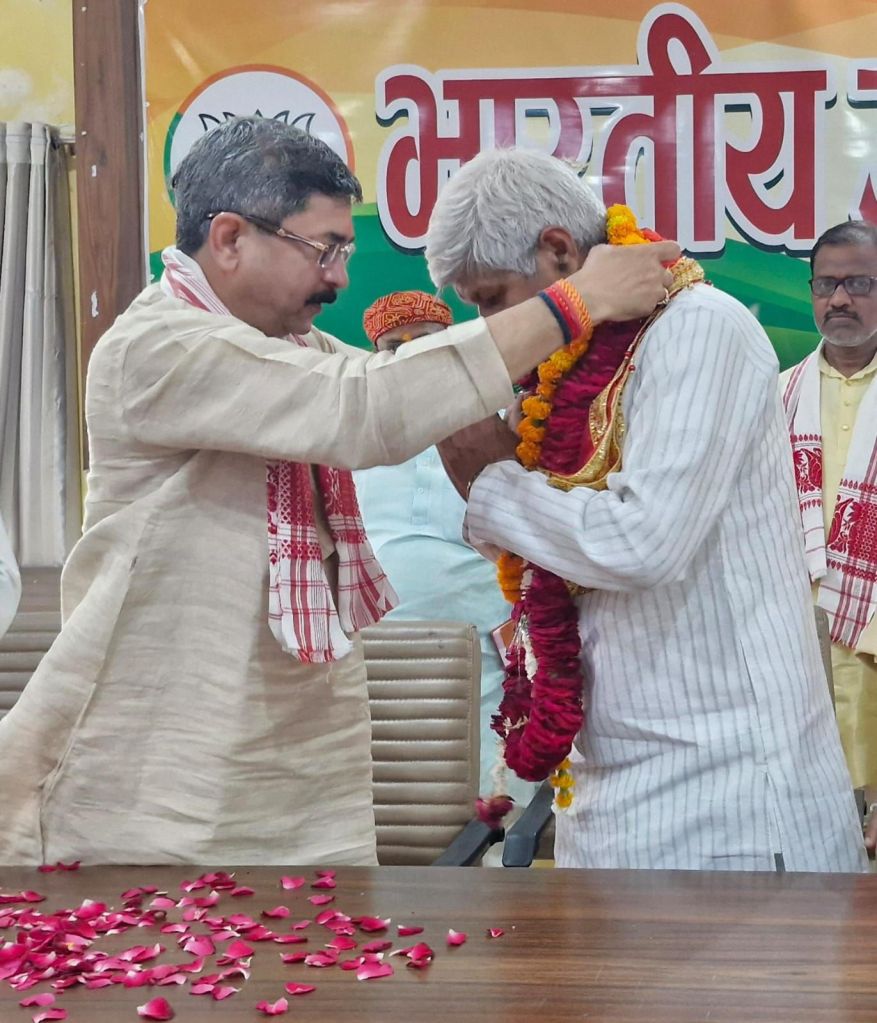 गाजीपुर। भाजपा कार्यालय पर आगामी 06 से 14 अप्रैल के मध्य आयोजित होने वाले सांगठनिक कार्यक्रमों के निमित्त आयोजित बैठक में गुरुवार को नवनियुक्त भाजपा जिलाध्यक्ष ओमप्रकाश राय का स्वागत पूर्व मंत्री उत्तर प्रदेश सरकार विजय कुमार मिश्र ने अंगवस्त्र और माल्यार्पण कर किया। उन्होंने श्री राय को बधाई देते कहा कि ओमप्रकाश राय का बूथ अध्यक्ष से शुरू हुआ सफर आज जिलाध्यक्ष तक आ पहुंचा है। एक कार्यकर्ता के अध्यक्ष बनने से गाजीपुर में भारतीय जनता पार्टी एक नया आयाम स्थापित करेगी। ऐसा विश्वास है।