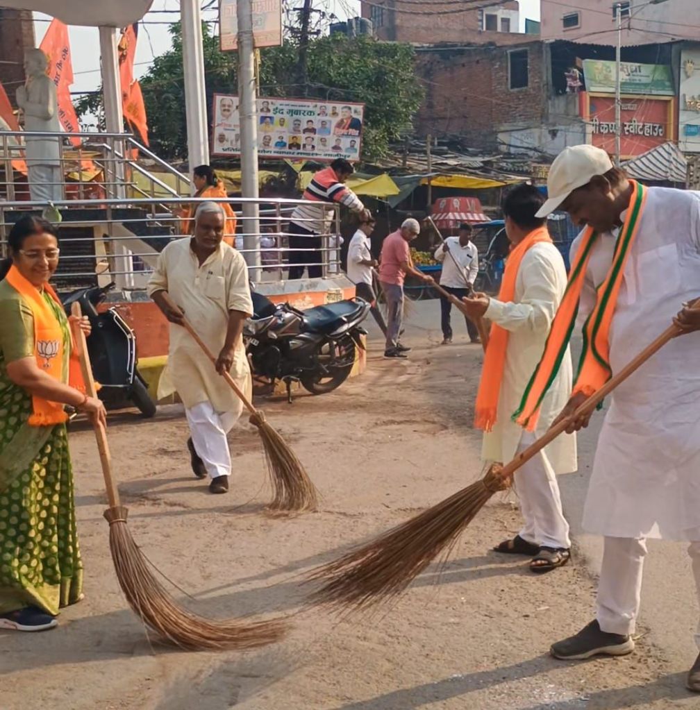 इस अवसर पर क्षेत्रीय उपाध्यक्ष सरोज कुशवाहा ने कहा कि स्वच्छता हमारे जीवन को समृद्धि प्रदान करता है, कई अन्य बिमारियों से बचाव भी करता है।जिससे हमे नित्य अपने घरो के साफ सफाई के आलावा सप्ताह में एक बार घरों से बाहर सार्वजनिक स्थानों पर भी एक घंटा स्वच्छता कार्य करना चाहिए।इस अवसर पर विनोद अग्रवाल, प्रीति गुप्ता,साधना राय,किरन सिंह, लालसा भारद्वाज, सुनील गुप्ता, नंदू कुशवाहा,रेनू गुप्ता, मुकेश राय,हेमंत त्रिपाठी, अजय कुशवाहा, अभिनव सिंह ,विशाल चौरसिया,शशांक राय, शिवम त्रिपाठी, अजय गुप्ता, सूर्य प्रकाश यादव , नरेंद्र गुप्ता एवं अन्य पार्टी के कार्यकर्ता उपस्थित रहे। निवर्तमान जिलाध्यक्ष सुनील सिंह ने विवेकी राय वार्ड क्षेत्र मे शिव मंदिर पर झाड़ू लगाकर नाली की साफ सफाई कर स्वच्छता कार्य किया। इस अवसर पर अजय राय दारा, निखिल राय , अविनाश सिंह, अनिल सिंह आदि थे। प्रदेश कार्यसमिति सदस्य एवं पूर्व जिलाध्यक्ष कृष्ण बिहारी राय ने नगर के आमघाट मे गांधी पार्क में स्वच्छता का कार्य झाड़ू लगाकर एंव कुड़ा बटोर कर किया गया। उन्होंने कहा कि स्वच्छता जहां मन को प्रसन्नता तन को स्वस्थ समृद्ध बनाने में सहायक है वही आर्थिक क्षय को रोकने मे भी विशेष प्रभावशाली है।इस अवसर पर अभिनव सिंह छोटू, रासबिहारी राय, सोमेश मोहन राय ,धर्मेश राय, शनि चौरसिया, छोटे चौबे,बब्बू राय, कृष्णकांत राय, दीपक जायसवाल ,सतीश राय आदि उपस्थित थे।