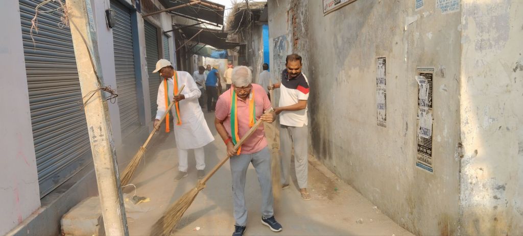 सार्वजनिक स्थानों पर नेताओं ने किया साफ-सफाई