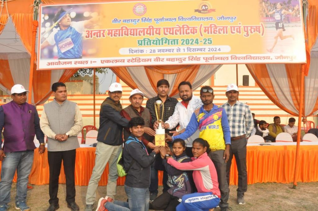 गाजीपुर। वीर बहादुर सिंह पूर्वांचल विश्वविद्यालय जौनपुर परिसर स्थित एकलव्य स्टेडियम में अन्तर महाविद्यालयीय एथलेटिक पुरूष / महिला प्रतियोगिता 2024-2025 का समापन हुआ। प्रतियोगिता के समापन सत्र के मुख्य अतिथि प्रोफे० (डॉ०) राघवेन्द्र कुमार पाण्डेय अध्यक्ष, खेलकूद परिषद ने पुरस्कार वितरण एवं ट्राफी प्रदान कर की। इस अवसर पर प्रोफे० (डॉ०) राघवेन्द्र कुमार पाण्डेय ने कहा कि एथलेटिक खेल एक पुरानी खेल विधा है जो विश्व में सबसे अधिक लोकप्रिय है। खेल बच्चों के बौद्धिक एवं मानसिक विकास का माध्यम होता है। स्वस्थ शरीर में ही स्वस्थ मष्तिष्क का वास होता है। प्रोफेसर पाण्डेय ने कहा कि प्रदेश एवं केन्द्र सरकार द्वारा खेल को बढ़ावा देने के की तरह के कार्यक्रम चलाए जा रहे हैं जिससे बच्चों का भविष्य उज्ज्वल बन सकेगा। भारत विश्व का युवा देश है और खेल के क्षेत्र में आगे बढ़ने की सम्भावना प्रबल है। उन्होंने सभी विजेता व उपविजेता खिलाड़ियों को बधाई दी। अंको के आधार पर महिला वर्ग में स्नातकोत्तर महाविद्यालय, गाजीपुर विजेता, पं० दीनदयाल उपाध्याय पी० जी० कालेज सैदपुर, गाजीपुर उपविजेता तथा शहीद स्मारक पी० जी० कालेज गाजीपुर तृतीय स्थान पर रही। वहीं पुरूष वर्ग में मो० हसन पी० जी० कालेज जौनपुर विजेता, स्नातकोत्तर महाविद्यालय, गाजीपुर उपविजेता एवं सत्यदेव पी० जी० कालेज गाजीपुर तृतीय स्थान पर रहा।