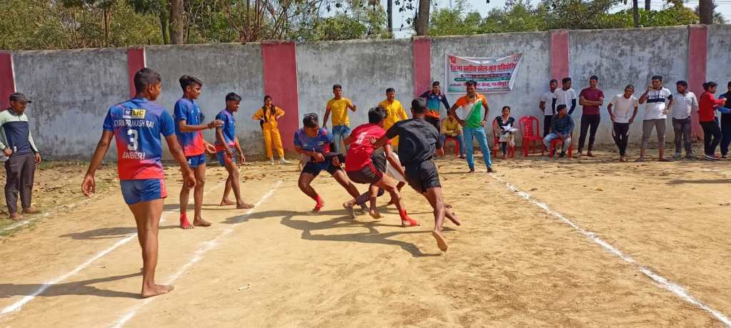 गाजीपुर। जिला खेल कार्यालय के तत्वावधान में पं0 दीनदयाल उपाध्याय के जन्म शताब्दी समारोह के अवसर जिला स्तरीय जूनियर बालकों की कबड्डी व वॉलीबाल प्रतियोगिता आयोजन गुरुवार को किया गया। कबड्डी खेल में कुल 8 टीमो ने प्रतिभाग किया। जिसका फाइनल मैच इगिलशपुर बनाम नेहरू स्टेडियम गाजीपुर के बीच खेला गया। जिसमें इग्लिशपुर की टीम 15-10 से विजयी रही। इस प्रतियोगिता का उद्घाटन नरेन्द्र विष्वकर्मा दिव्यांग अधिकारी व रामनगीना यादव पिछड़ा समाज कल्याण अधिकारी द्धारा किया गया। इस अवसर पर विशिष्ट अतिथि के रूप में बृजेश सिंह कार्यवाहक अध्यक्ष ओलम्पिक संघ गाजीपुर व अमित राय रहें। वालीबाल प्रतियोगिता में कुल 10 टीमों ने प्रतिभाग किया, जिसका फाइनल मैच युवराजपुर बनाम नेहरू स्टेडियम गाजीपुर के बीच खेला गया। जिसमें युवराजपुर की टीम 25-22 व 25-17 से विजयी रही। विजेता खिलाड़ियों कोे पुरस्कार वितरण के मुख्य अतिथि सर्वदेव सिंह यादव (सेवानिवृत क्रीड़ा धिकारी) गाजीपुर के कर कमलो द्धारा किया गया। कबड्डी मैच निर्णायक के रूप में मु0 अकरम अहमद, मनोज सिंह, कन्हैया यादव, राजेश यादव, अजय कुमार, अनिल कुमार, कादिर खान, दिनेश सिंह रहें। वालीबाल मैच निर्णायक के रूप में पी0एन0 सिंह, शिवाजीत सिंह, विनोद शर्मा, शंकर राम, राणा प्रताप सिंह व रामानन्द यादव रहें। इस अवसर पर सुदामा राम,क0सहायक, बृजेश कुमार हाकी कोच, विनोद कुमार जायसवाल एथलेटिक्स कोच, संगीता फुटबाल कोच, विजय (खेलों इण्डिया) एथलेटिक्स कोच, जैनेन्द्र कुमार, आदि उपस्थित रहें। अन्त में अरविन्द यादव, क्रीड़ाधिकारी ने मुख्य अतिथि एवं सभी आगन्तुओं व खिलाड़ियों के प्रति आभार व्यक्त किया।
