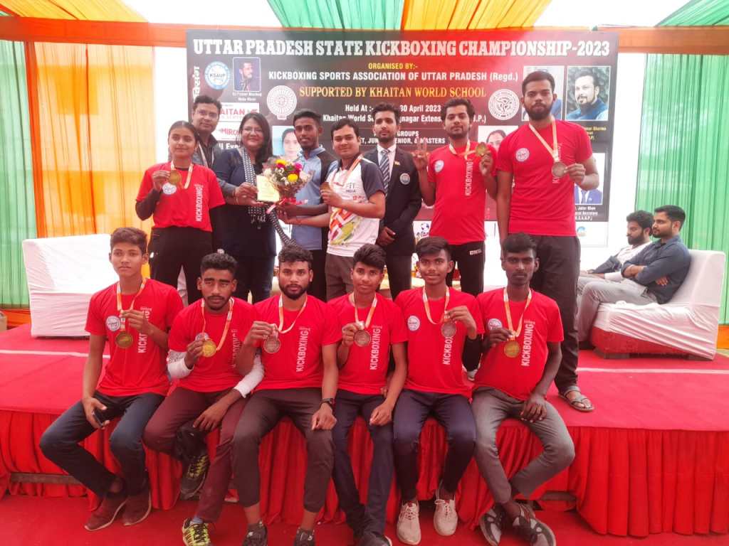 गाजीपुर। उत्तर प्रदेश किक बॉक्सिंग चैंपियनशिप का आयोजन 28 से 30 अप्रैल को गाजियाबाद में खैतान वर्ल्ड स्कूल राजनगर एक्सटेंशन में आयोजन किया गया। जिसमे गाजीपुर जिले के जया दुबे 44 किलो भार वर्ग में स्वर्ण पदक, अखिलेश कुमार बिंद 52 किलो भार वर्ग मे स्वर्ण पदक, राहुल यादव 50 किलो भार वर्ग में स्वर्ण पदक, अखिलेश कुमार 60 किलो भार वर्ग में स्वर्ण पदक, सत्यम यादव 55 किलो भार वर्ग में स्वर्ण पदक, शेषनाथ सिंह यादव 57 किलो भार वर्ग में स्वर्ण पदक, आलोक प्रकाश बिंद 50 किलो भार वर्ग में रजत पदक, अमरेंद्र कुमार 57 किलो भार वर्ग में कांस्य पदक, ज्ञानेंद्र कुमार बिंद 48 किलो भार वर्ग में कांस्य पदक, अंकित यादव 75 किलो भार वर्ग में कांस्य पदक प्राप्त कर के गाजीपुर जिले का नाम रोशन किया।