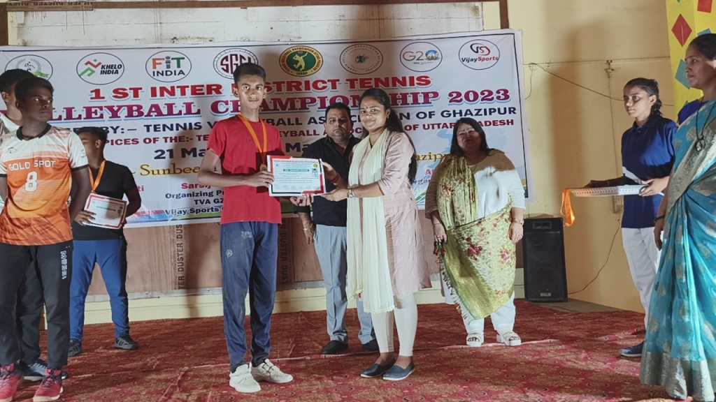 गाजीपुर। जिले में दो दिवसीय वॉली वाल प्रतियोगिता समारोह सफलतापूर्वक सम्पन्न हुआ। इस चैम्पियनशिप में जनपद गाजीपुर सहित अन्य जनपद से आए विद्यालयों में बालक वर्ग तथा बालिका वर्ग के कुल 120 खिलाड़ियों ने हिस्सा लिया, जिसमें मिक्स डबल, सिंगल, डबल जैसे खेल का आयोजन हुआ। शाह फैज के नाविका श्रीवास्तव और विवेक मौर्या ने अंडर 14 मिक्स डबल में गोल्ड मेडल जीता।