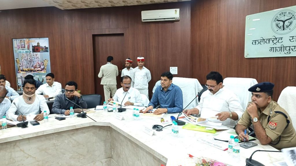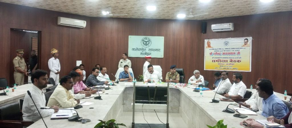рдЧрд╛рдЬреАрдкреБрд░редрд░рд╡рд┐рдВрджреНрд░ рдЬрд╛рдпрд╕рд╡рд╛рд▓ рд░рд╛рдЬреНрдп рдордВрддреНрд░реА (рд╕реНрд╡рддрдВрддреНрд░ рдкреНрд░рднрд╛рд░) рд╕реНрдЯрд╛рдк рд╡ рдиреНрдпрд╛рдпрд╛рд▓рдп рд╢реБрд▓реНрдХ рдПрд╡рдВ рдкрдВрдЬреАрдпрди рд╡рд┐рднрд╛рдЧ рдЙ0рдкреНрд░0 рд╕рд░рдХрд╛рд░ / рдЬрдирдкрдж рдХреЗ рдкреНрд░рднрд╛рд░реА рдордВрддреНрд░реА рдХреА рдЕрдзреНрдпрдХреНрд╖рддрд╛ рдореЗ рдЬрдирдкрдж рдореЗ рд╡рд┐рдХрд╛рд╕ рдХрд╛рд░реНрдпрд╛реЗ рдХреА рд╕рдореАрдХреНрд╖рд╛ рдмреИрдардХ рдХрд▓реЗрдХреНрдЯреНрд░реЗрдЯ рд╕рднрд╛рдЧрд╛рд░ рд╕рдореНрдкрдиреНрди рд╣реБрдИрдВ ред рдмреИрдардХ рд╕реЗ рдкреВрд░реНрд╡ рдЬрд┐рд▓рд╛рдзрд┐рдХрд╛рд░реА рдЕрд╡рд┐рдирд╛рд╢ рдХреБрдорд╛рд░ рдПрд╡рдВ рдкреБрд▓рд┐рд╕ рдЕрдзреАрдХреНрд╖рдХ рдбрд╛. рдИрд░рдЬ рд░рд╛рдЬрд╛ рдиреЗ рдордВрддреНрд░реА рд░рд╡рд┐рдВрджреНрд░ рдЬрд╛рдпрд╕рд╡рд╛рд▓ рдХреЛ рдмреБрдХреЗ рджреЗрдХрд░ рд╕реНрд╡рд╛рдЧрдд рдХрд┐рдпрд╛ ред рд╕рдореАрдХреНрд╖рд╛ рдмреИрдардХ рдХреЗ рджреМрд░рд╛рди рдореБрдЦреНрдп рд╡рд┐рдХрд╛рд╕ рдЕрдзрд┐рдХрд╛рд░реА рд╕рдВрддреЛрд╖ рдХреБрдорд╛рд░ рд╡реИрд╢реНрдп рдиреЗ рдЬрдирдкрдж рдореЗрдВ рд╣реЛ рд░рд╣реЗ рд╡рд┐рдХрд╛рд╕ рдХреА рд╡рд┐рд╕реНрддреГрдд рд╕реНрдерд┐рддрд┐ рдХреА рдЬрд╛рдирдХрд╛рд░реА рдкреА рдкреА рдЯреА рдХреЗ рдорд╛рдзреНрдпрдо рд╕реЗ рджреАред