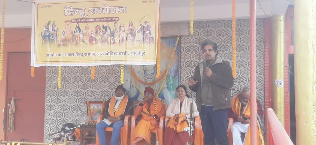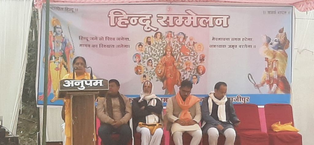 गाज़ीपुर। जनपद के नगर क्षेत्र के शिवाजी बस्ती, दयानन्द बस्ती व गुरूबाग बस्ती मे हिन्दू सम्मेलन का आयोजन किया गया। दयानंद बस्ती का कार्यक्रम डीएवी मैदान पर आयोजित किया गया। विराट हिंदू सम्मेलन के मुख्य वक्ता जौनपुर विभाग के विभाग कार्यवाह डॉ नितेश ने बताया कि भारत की संस्कृति वसुधैव कुटुंबकम एवं सर्व धर्म समभाव की है। सनातन धर्म हर जीव का कल्याण चाहता है। इसलिए मानवता, उपासना, आराधना, साधना एवं त्याग की भावना हर इंसान में होना चाहिए। उन्होंने कहा कि जब हिंदू समाज संगठित और अनुशासित होगा, तभी भारत विश्व गुरु बन सकेगा।