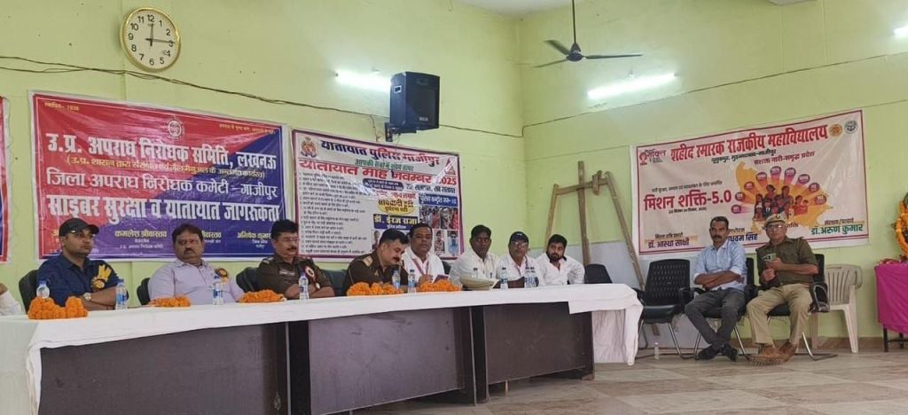 गाजीपुर। उत्तर प्रदेशीय अपराध निरोधक समिति लखनऊ के चेयरमैन कमलेश श्रीवास्तव के निर्देशानुसार जिला अपराध निरोधक समिति गाजीपुर के तत्वावधान में शहीद स्मारक गवर्नमेंट डिग्री कॉलेज, मोहम्मदाबाद में साइबर सुरक्षा और यातायात जागरूकता पर एक महत्वपूर्ण कार्यक्रम आयोजित किया गया। कार्यक्रम में मुख्य अतिथि के रूप में क्षेत्राधिकारी मोहम्मदाबाद सुधाकर पाण्डेय उपस्थित रहे। उनके साथ कोतवाली प्रभारी रामसजन नागर, साइबर क्राइम प्रभारी शिवाकांत मिश्रा, यातायात उप निरीक्षक सुरेंद्र सिंह, शुभम सिंह, डॉ. आस्था साक्षी (मिशन शक्ति प्रभारी), डॉ. अवनीश कुमार सिंह, डॉ. माधवम सिंह, मोहम्मद रशीद रब्बानी, जिला सचिव अभिषेक कुमार सिंह,वसीम रजा, सुजीत कुमार सिंह, शेरशाह, मुकेश उपाध्याय, विनीत दुबे तथा कमलदेव राय समेत अनेक गणमान्य व्यक्ति मौजूद रहे। कार्यक्रम की अध्यक्षता कॉलेज के प्राचार्य डॉ. अरुण कुमार ने किया। जबकि संचालन डॉ. माधवम सिंह द्वारा किया गया।साइबर सुरक्षा सत्र में साइबर प्रभारी शिवाकांत मिश्रा एवं शुभम सिंह ने छात्रों को ऑनलाइन ठगी, डिजिटल अरेस्ट, सोशल मीडिया फ्रॉड एवं संदिग्ध लिंक या .apk फाइल्स से बचाव के उपाय बताए। वहीं यातायात उप निरीक्षक सुरेंद्र सिंह ने सड़क सुरक्षा नियमों की जानकारी देते हुए छात्रों को ट्रैफिक सिग्नल, हेलमेट और सीट बेल्ट के महत्व पर विस्तार से बताया।